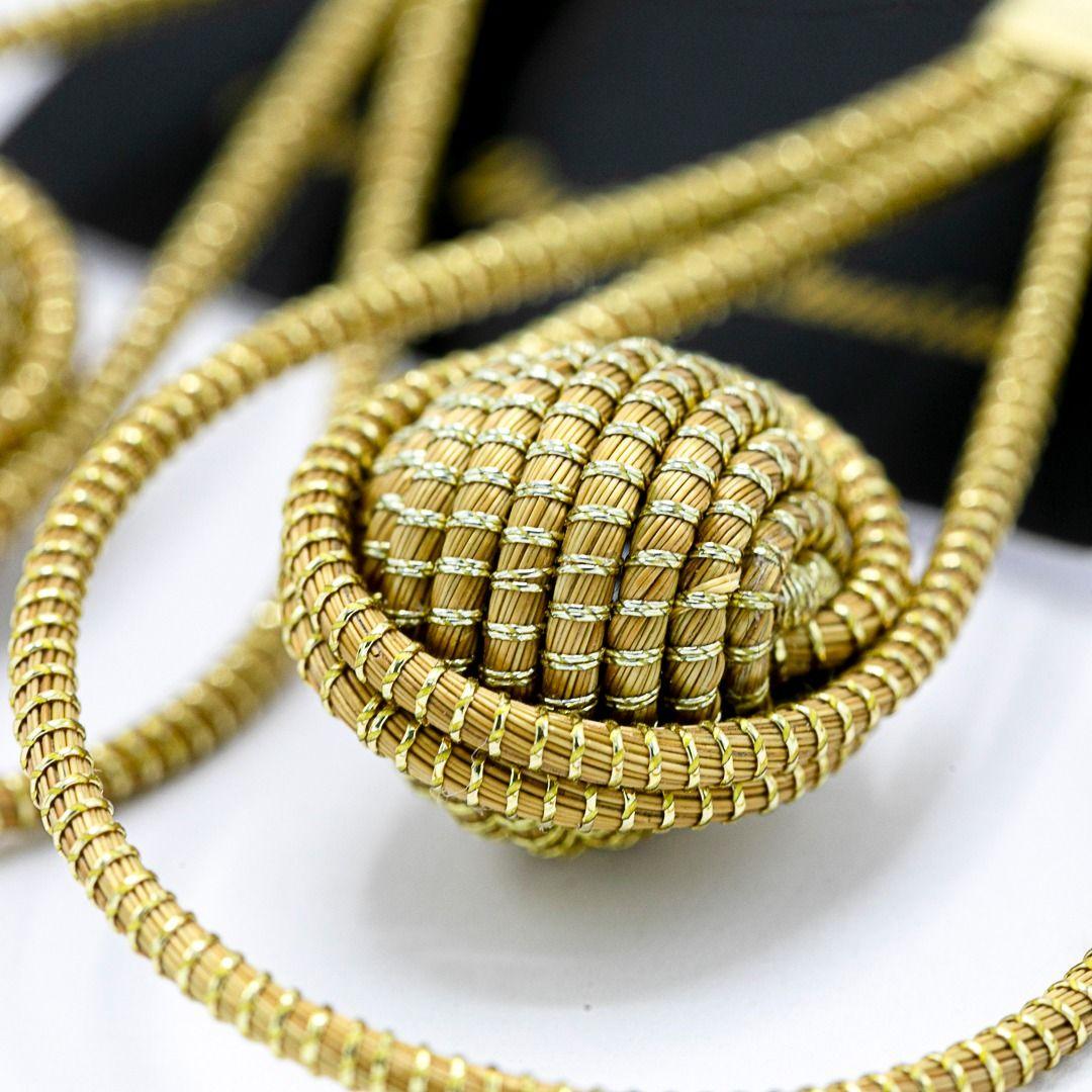 Pendiente de doble gota con una bolita elaborada en oro vegetal